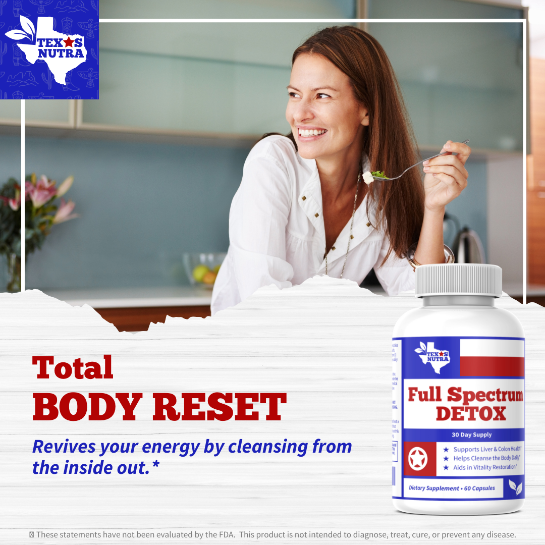 Refresh, cleanse, and restore your system with Texas Nutra Full Spectrum Detox — a complete herbal formula designed to support liver, colon, and digestive health while boosting vitality.